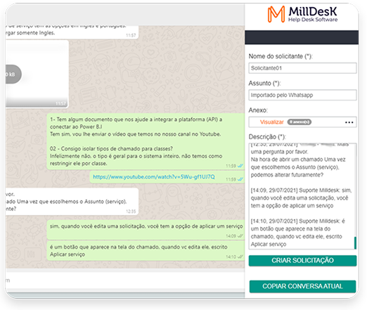 O meio de comunicação mais utilizado no mundo precisa ser integrado com o seu Help Desk, urgentemente! Permita que solicitações vindas do WhatsApp sejam cadastradas dentro do Milldesk e não perca o registro de nenhuma informação!