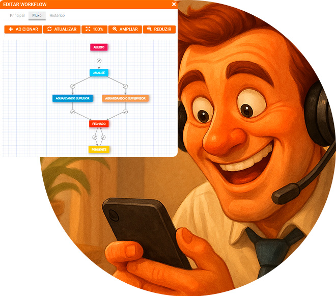 Automatize e organize fluxos de trabalho para abertura de chamados, suporte remoto, implantação de sistemas e gestão de infraestrutura de TI, garantindo atendimento rápido e sem gargalos.